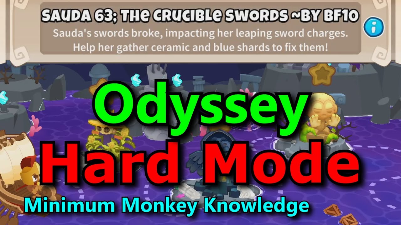 Btd6 Odyssey Hard Mode Minimum Monkey Knowledge Sauda 64 The Crucible Swords Tutorial Guide Youtube